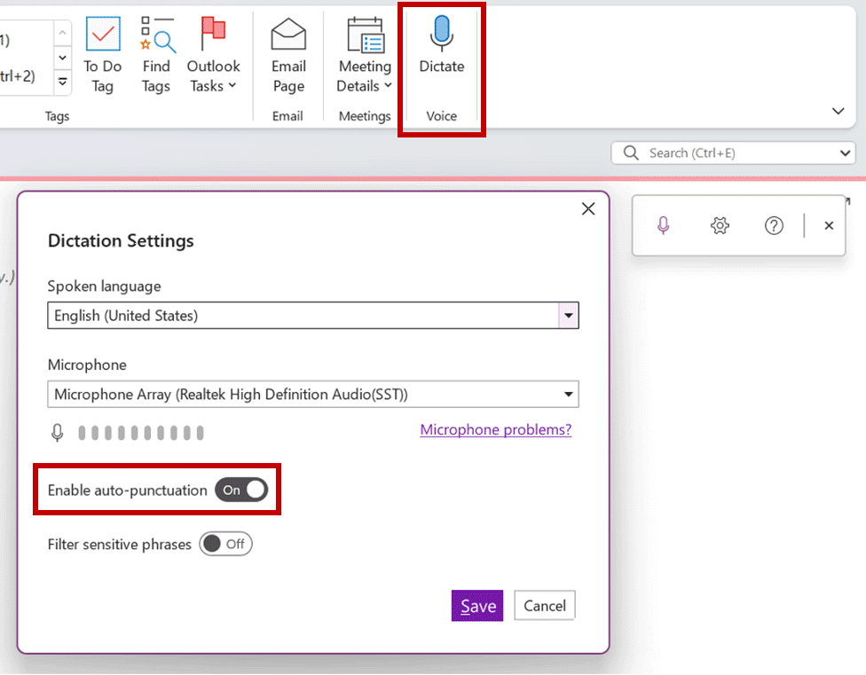 Break away from the keyboard and stay in your flow by using dictation with our AI-backed voice commands to add, format, edit, and organize your text. Say “delete that” if you change your mind, or “pause dictation” if you need a break. In line with our investments in pen and ink, we are ensuring a uniform experience across Office apps like Word and Outlook. Over the next few months, current dictate customers will see existing and new voice commands in Office apps added to OneNote. The auto-punctuation feature in dictation settings uses AI to ensure your thoughts flow freely without worrying about punctuation.