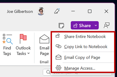 When you’re done capturing and organizing your notes, the new share experience in OneNote more clearly outlines opportunities to bring collaborators into your content. Those who want to give someone access to an entire notebook and collaborate in real time can select Share Entire Notebook or Copy Link to Notebook. Email Copy of Page is a great way to share a single page while keeping the rest of your notebook private.