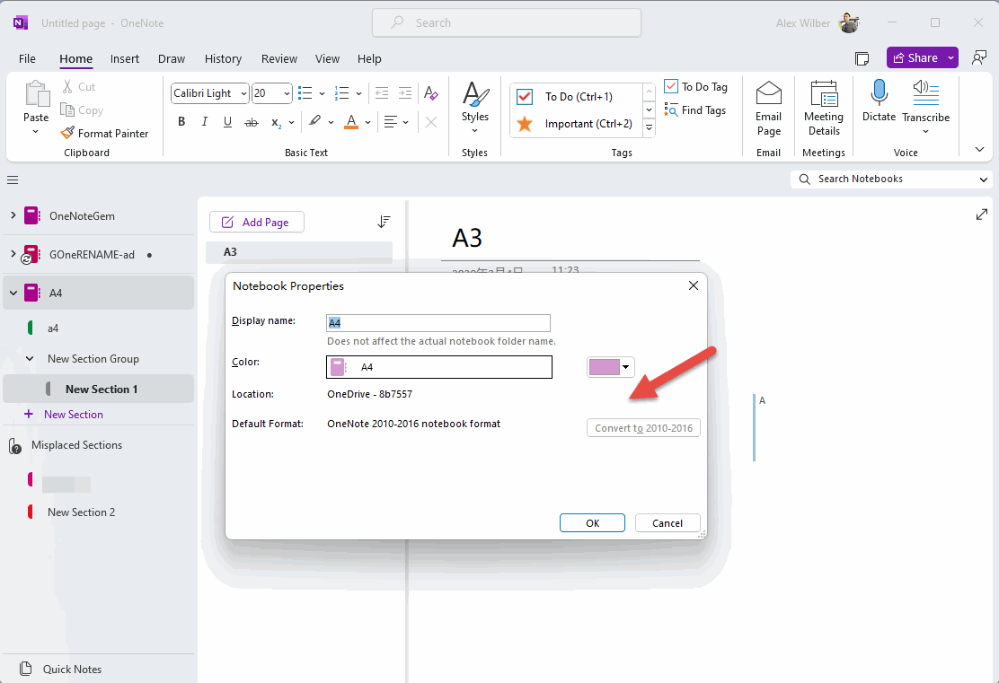 After v2305, notebooks saved on OneDrive.com and SharePoint do not have this "Change Location" button in its properties window.